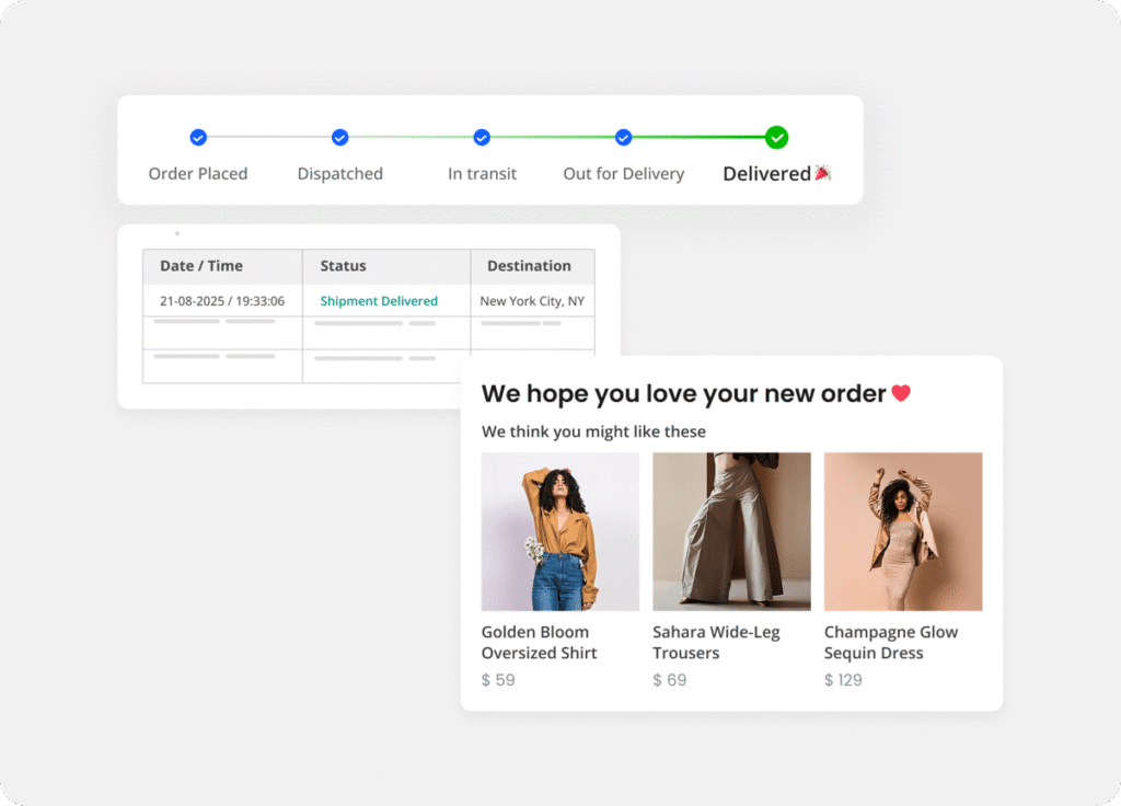 Create a customized, branded tracking experience that reflects your company’s identity. Engage customers with real-time updates and personalized notifications across multiple channels.